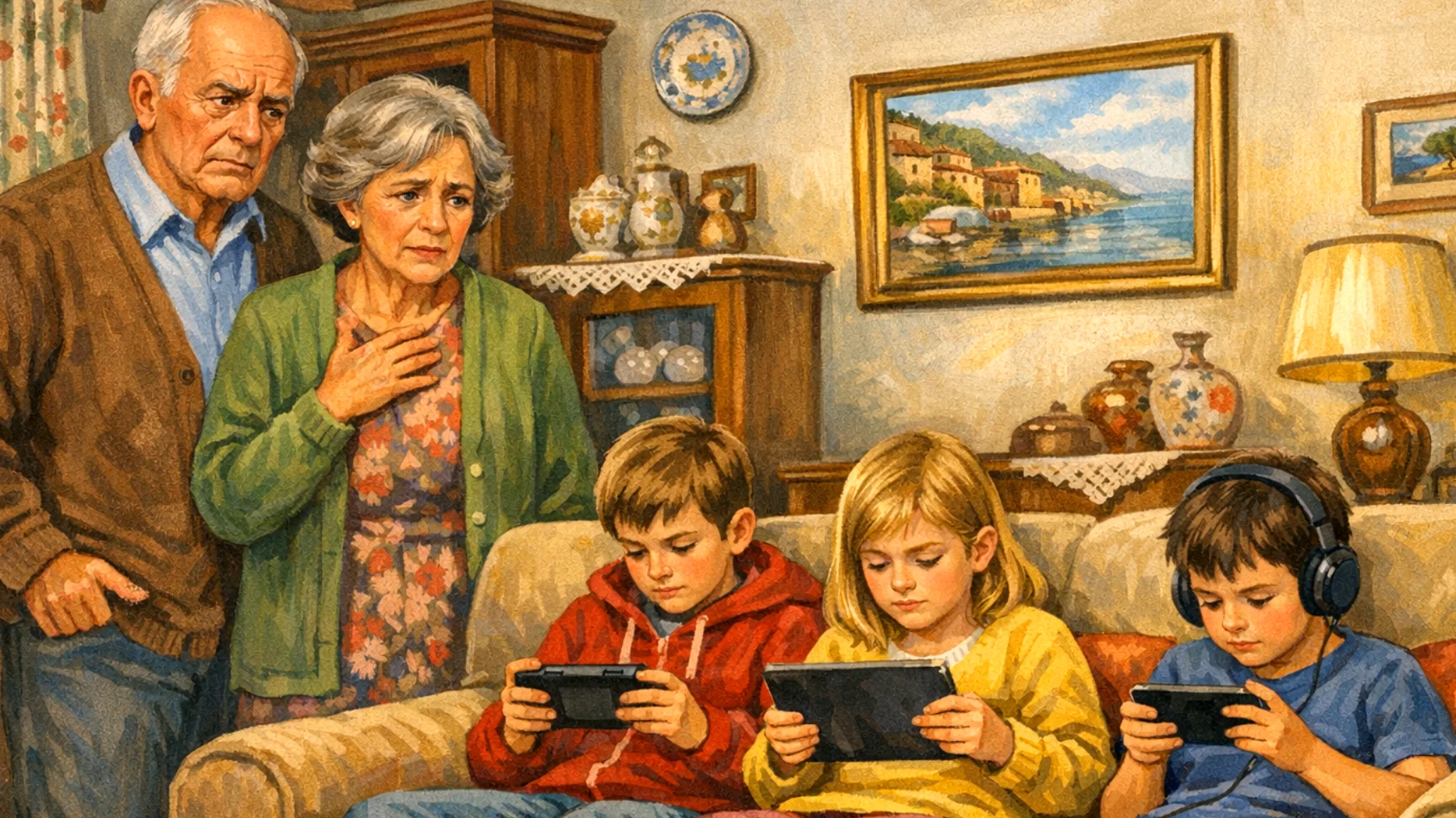 La domenica pomeriggio a casa dei nonni si è trasformata in un campo di battaglia silenzioso. Da una parte i bambini con gli occhi incollati agli schermi, dall’altra i nonni che oscillano tra il desiderio di accontentarli e la sensazione di essere semplici custodi di dispositivi elettronici. Quando i genitori tornano a riprendere i figli, le tensioni esplodono: “Ma come, gli hai dato il tablet per tre ore?” oppure “Papà, ti avevo detto niente videogiochi prima di cena”.